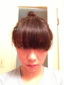 2nd, to be careful not to have the metal interact with the much longer strands, I updo’d my hair, like so: