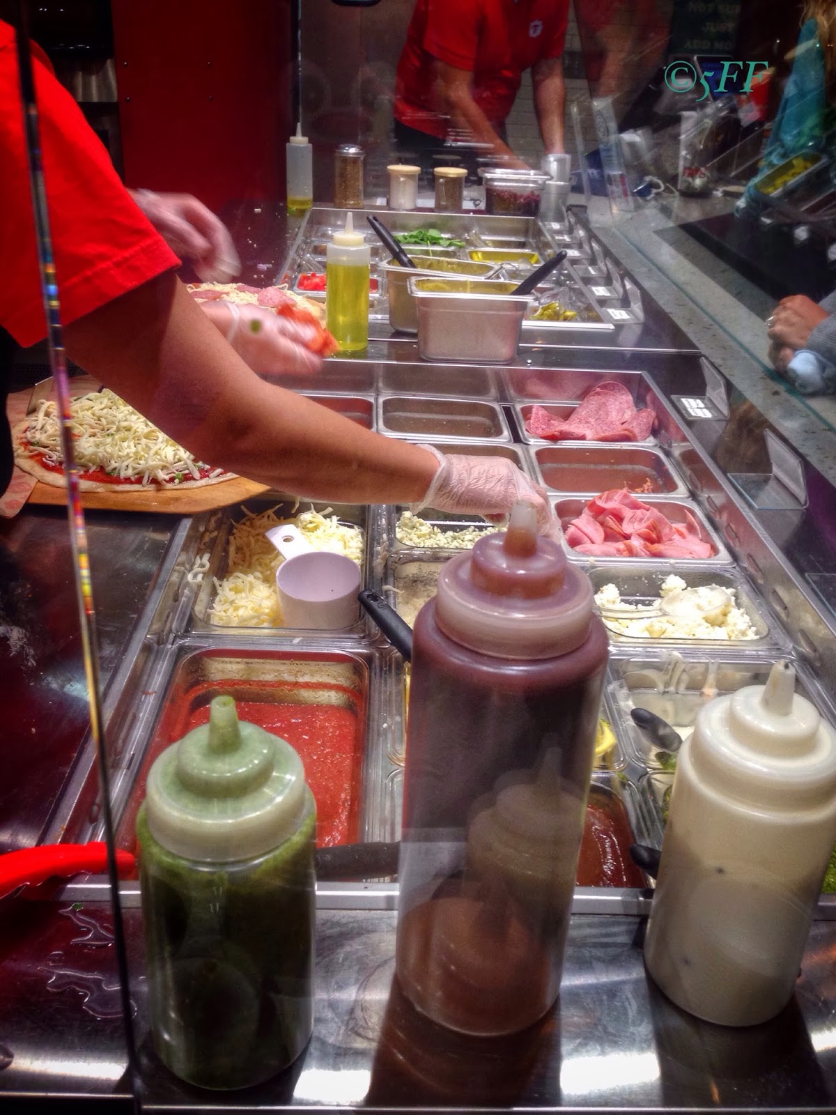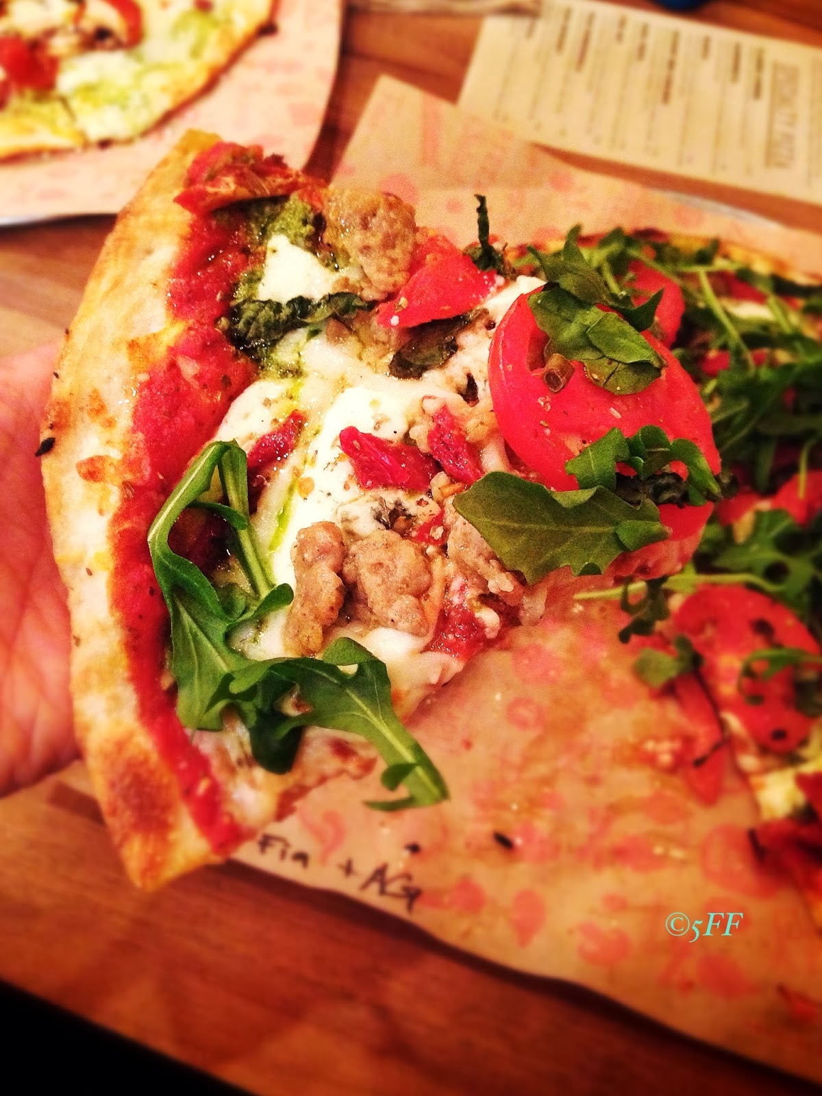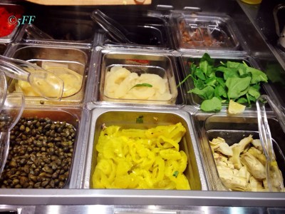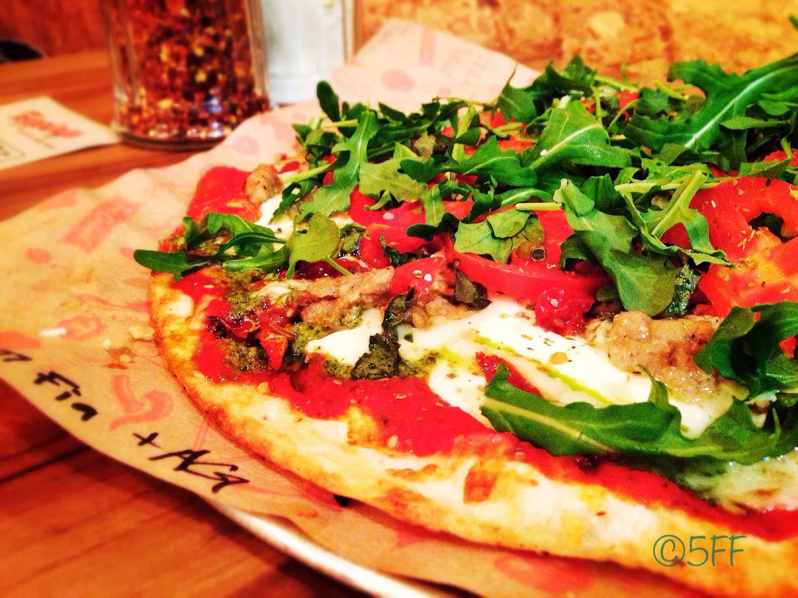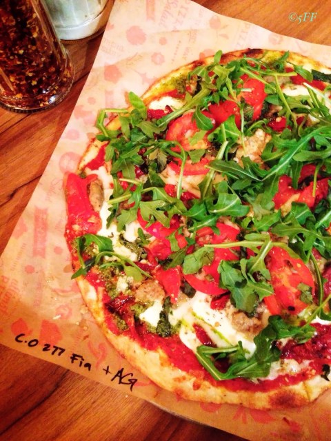 What disadvantages have I stumbled upon? In a minor tone the arugula weren’t pristinely fresh. In spite of plastic knives, we would need the old-fashioned pizza cutter to apply more pressure on the crust than I expected, though I’m sure a customer would have that handy in his pocket, alright.