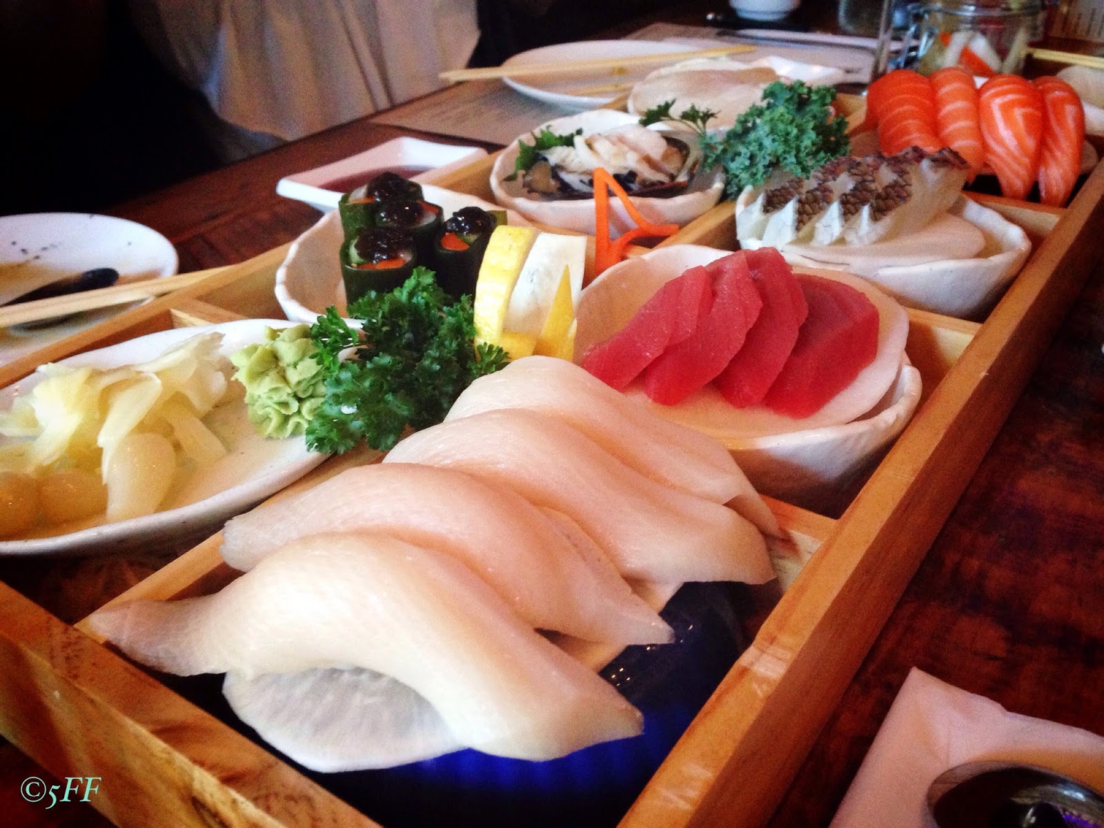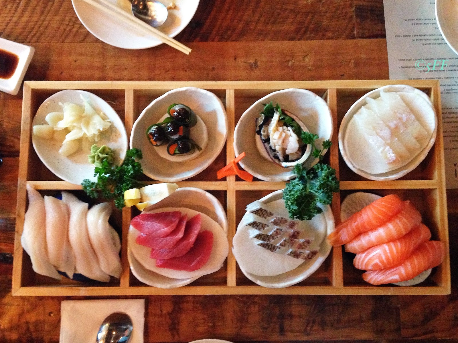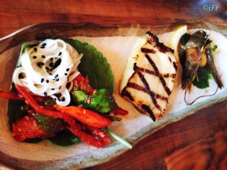 Otherwise go for my personal preference in ordering raw fish: assorted sushi and sashimi by means of 2-piece ordering and 5-piece ordering, respectively–e.g. 8 dishes of fresh and conscientiously cool seafood in a Dami Seafood Box for $40–for 2 customers total.