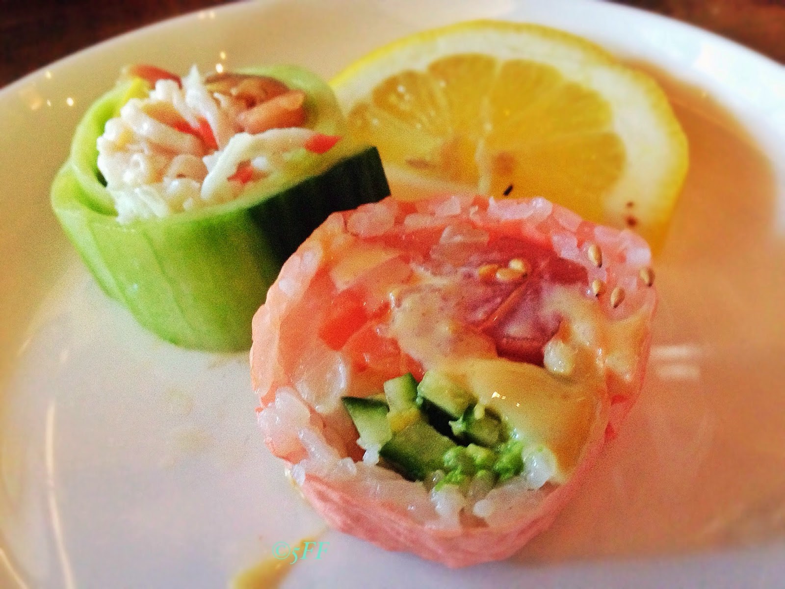 Easily available in the rolls are the low-to-zero carb specialties, such as the zesty Dami Special, which packs up tuna, salmon, albacore, and crab meat with avocado wrapped in cucumber. If soy paper appeals to personal texture, you might become enraptured with the Love Roll, which hugs around salmon, tuna, yellowtail, albacore, avocado, and cucumber.