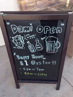 If you particularly can’t bear the wait or the excessive portions of red meat at the Korean BBQ next door, please do not hesitate and eat your heart out at Dami Sushi & Izakaya. As another approach to enliven that hankering heart is their everyday Happy Hour, offering $1 oysters.