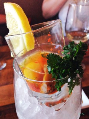 If a mix of adventure and familiarity is more comfortable and pleasurable–while simultaneously pursuing for an aphrodisiac–they have fresh Oysters either coming from the Eastern U.S. zone or Pacific zone. Pictured is a Shooter containing the Blue Point Oyster (from NY) with quail egg, masago, & yuzu sauce.