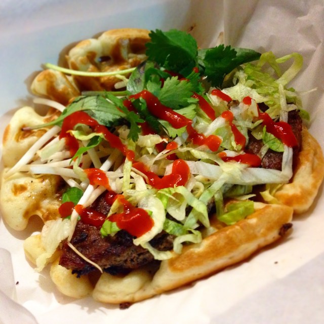 As the most underrated vendor I’ve ever visited from my 626 Night Market trips, based on their lack-of-people lines, I am making my “suggestion” an exception, and therefore I am asking you to trust me on this succulent creation. It’s simply a delicious pho wrapped in a soft, flavorful waffle, period.