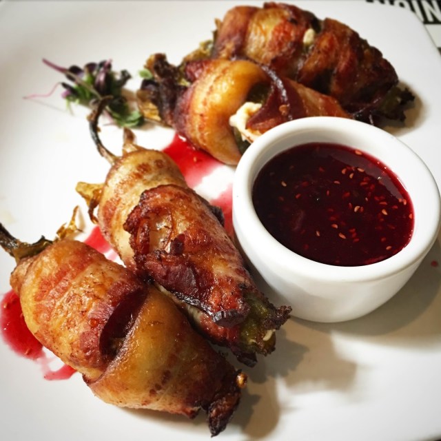 In addition to this dominantly veggie-filled skillet, I sinfully bit into these decadent, devilish Bacon Wrapped Jalapenos.