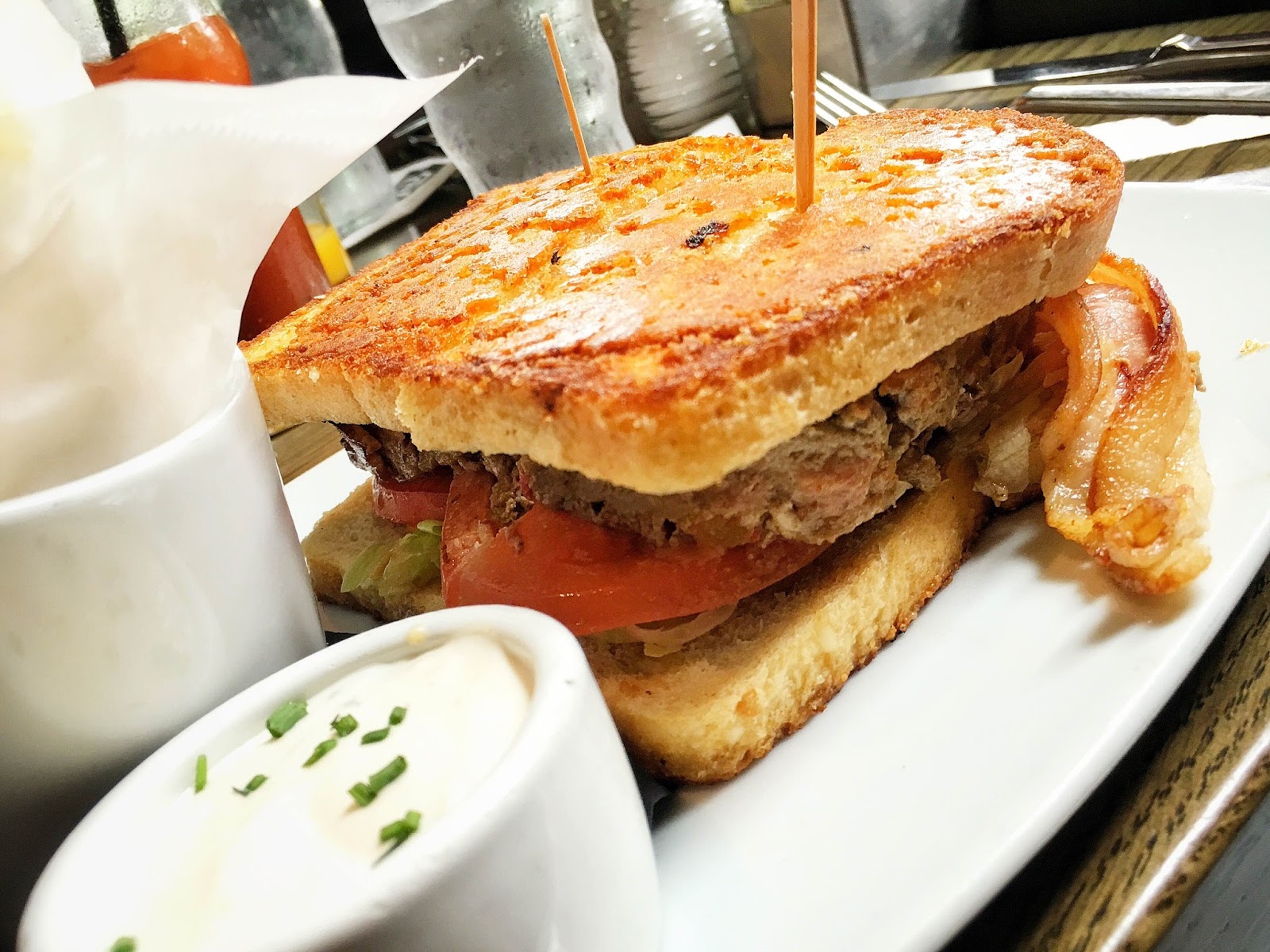 And this one is an interestingly yummy-looking Meatloaf Sandwich with bacon somehow attempting to escape.