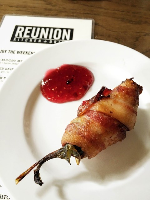 My friend, aka the person who organized our reunion, opted for a Bloody Mary with a Bacon-Wrapped Jalapeno and Slim Jim as a “garnish.” The consistency of the drink was quite diluted but contained a delicate amount of horseradish.