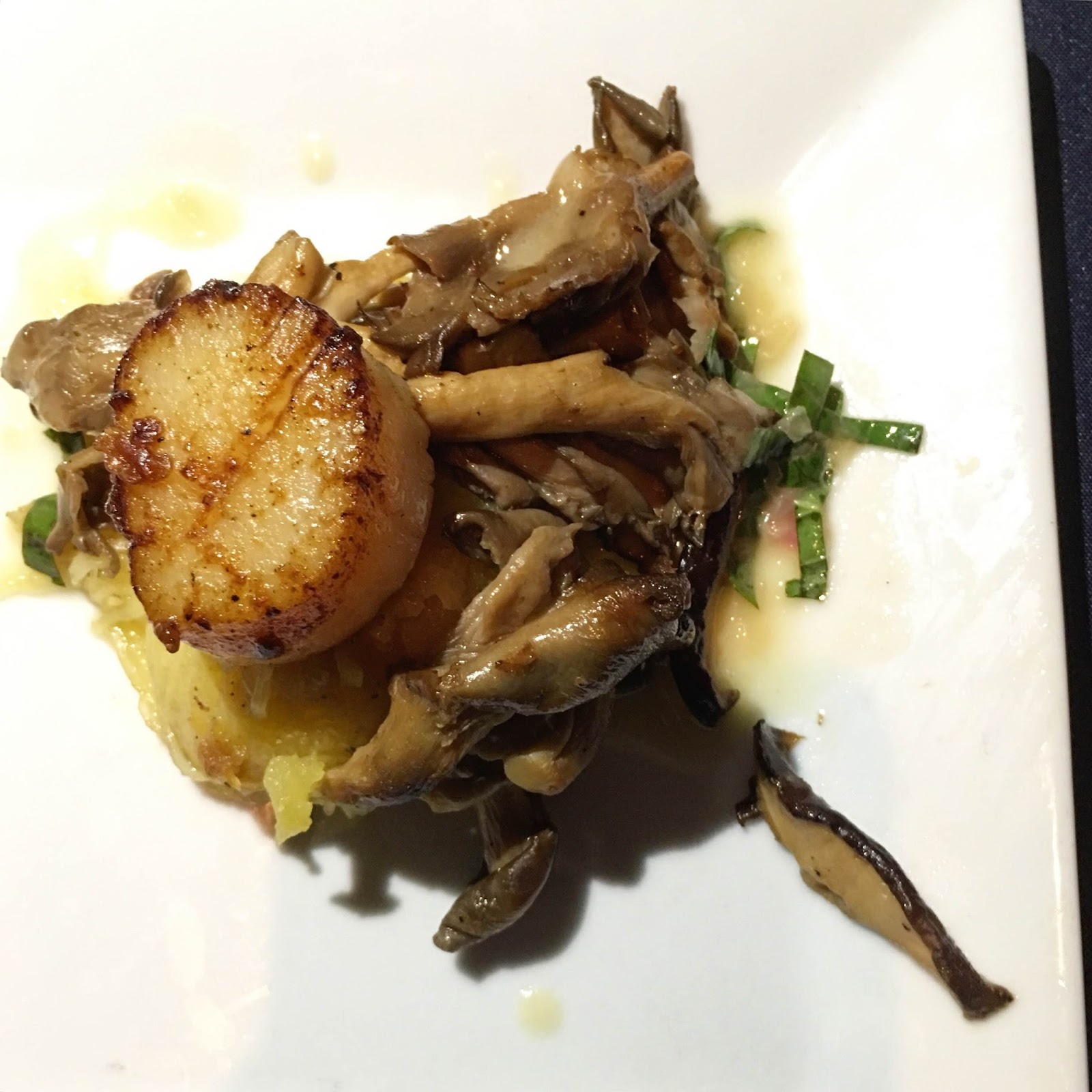 Course 3: Seared Scallop Spaghetti Squash, Sauteed Mushrooms, Yuzu Thai Basil Beurre Blanc