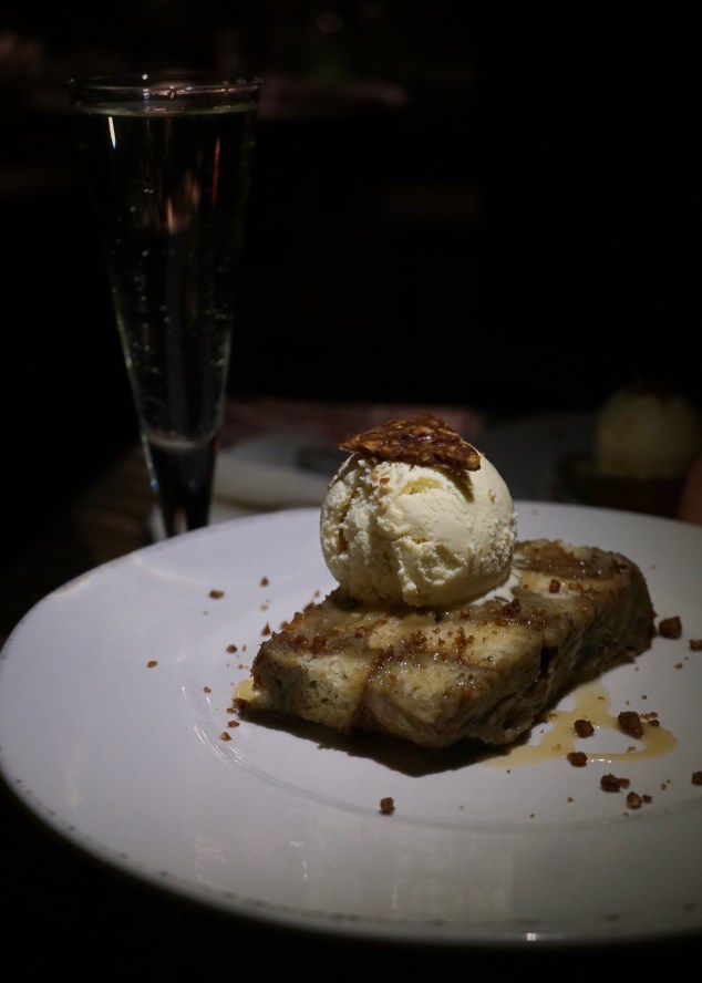 The last course, the Satsumaimo Sweet Potato and Banana Bread Pudding, ended with a deliciously fruity and rich touch alongside the ginger honey ice cream and the complimentary, unexpected Prosecco to bubbly pair. The bread pudding, though, deemed too dense of a texture that I failed to finish all of my dessert. Come to think of my last words — I partly blame my incessant hunger on our “pre-appetizer” featured in Farmhouse’s “regular, non-NBRW” dinner menu…